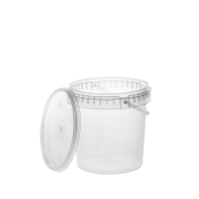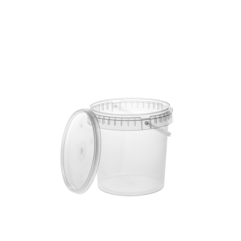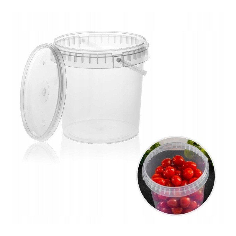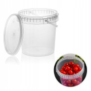 Wysokiej jakości, przezroczyste wiaderko plastikowe o pojemności 1,2 L (do krawędzi) z pokrywką. Wykonane z trwałego tworzywa PP, posiada atest dopuszczający do kontaktu z żywnością, dzięki czemu idealnie nadaje się na przetwory, miodu, kiszonki czy produkty sypkie. Szczelne zamknięcie (plomba) chroni zawartość przed powietrzem i wysychaniem. Praktyczny, mały pojemnik spożywczy z rączką, doskonały do użytku domowego i gastronomicznego.