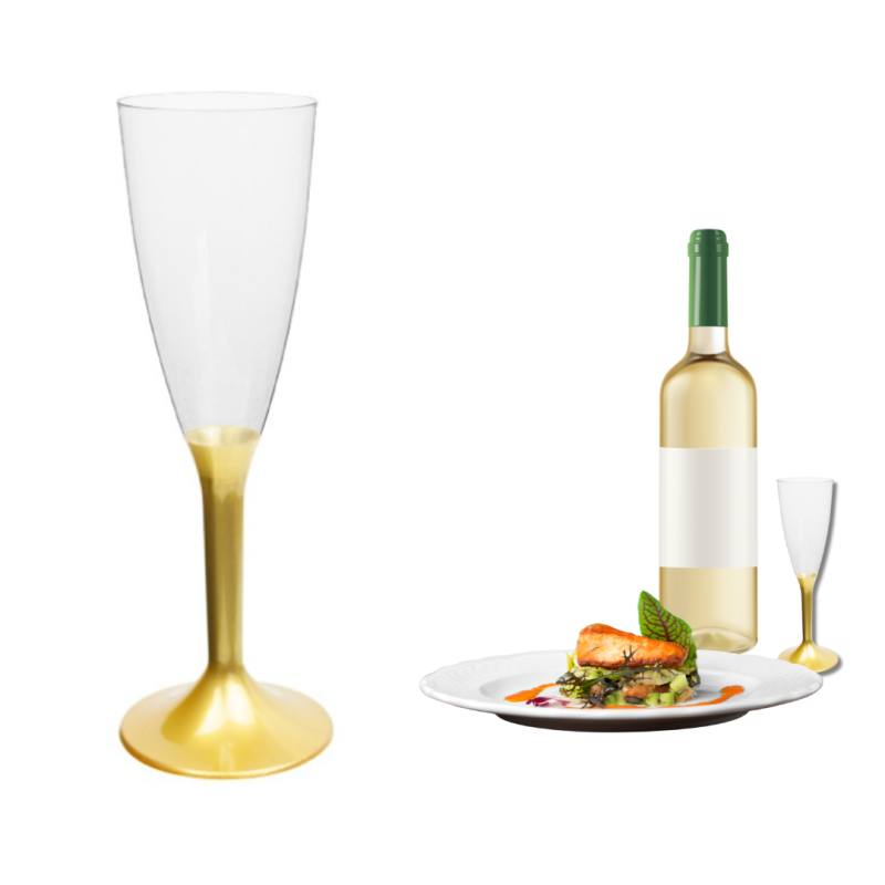 Kieliszki do szampana plastikowe na złotej nóżce, 140 ml (10 szt.)