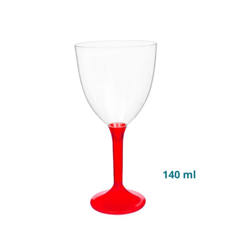 Kieliszek plastikowy do wina na czerwonej nóżce 140 ml (10 szt.)