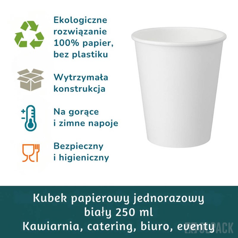 Kubek papierowy ekologiczny 100% papier, biały 250 ml ( 100 szt.), bez dopłaty SUP