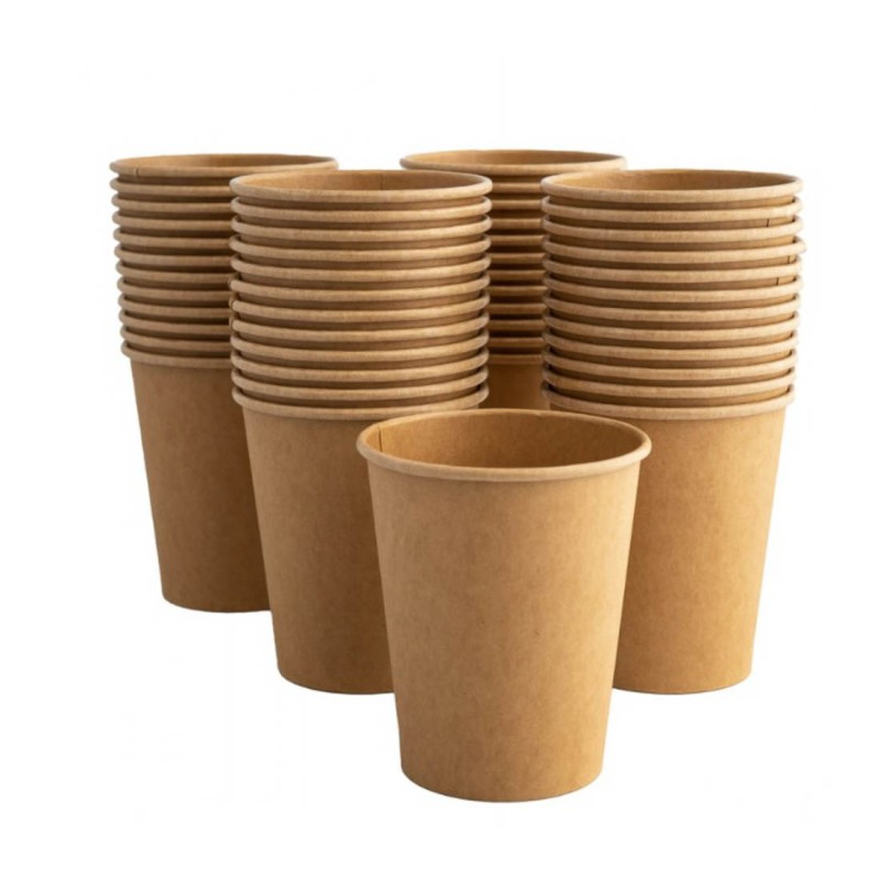 ❓Czy kubek ma powłokę plastikową?Nie. Kubeczki kraftowe są w 100% papierowe, bez warstwy plastiku (PE lub PLA). Zamiast tego stosowana jest ekologiczna powłoka dyspersyjna na bazie wody, która zabezpiecza przed przemakaniem.
