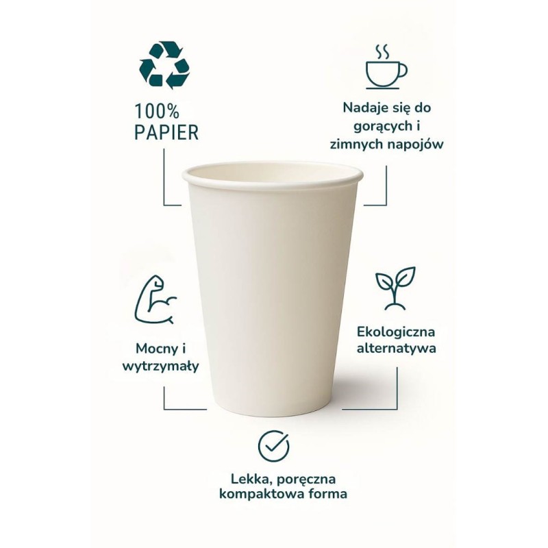 Kubek papierowy ekologiczny 100% papier, biały 350 ml (50 szt.)