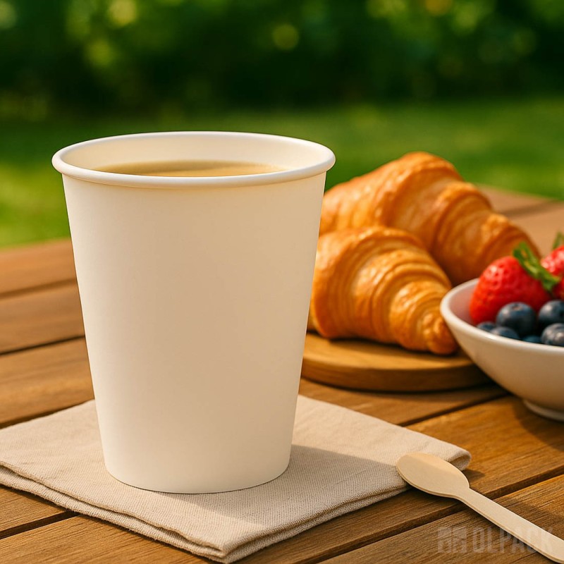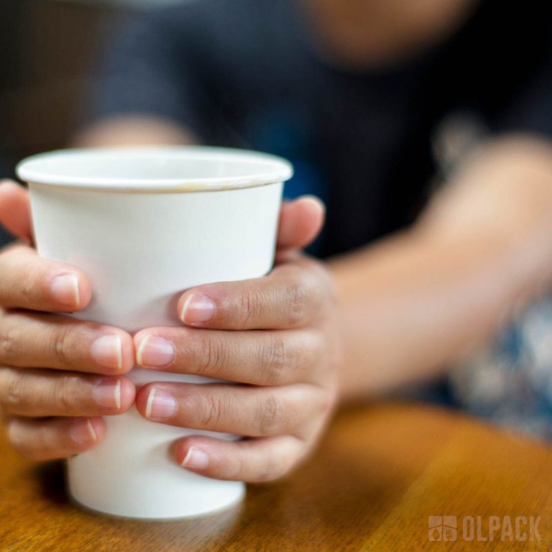 Kubki Olpack z 100% papieru są pokryte ekologiczną powłoką dyspersyjną na bazie wody, dzięki czemu są szczelne, biodegradowalne, recyklingowalne.
