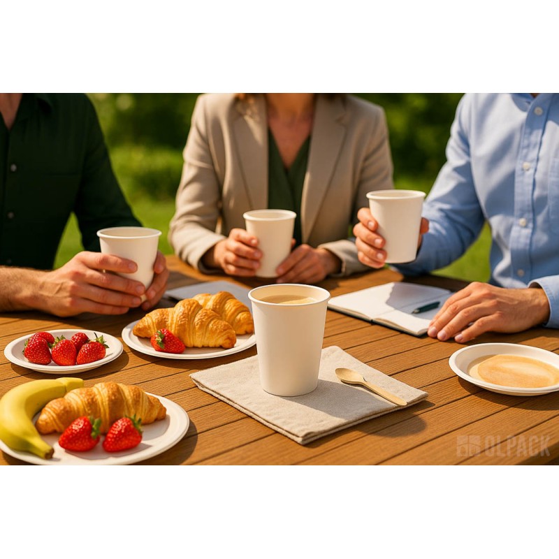 Doskonale sprawdzają się jako kubeczki do napojów gorących - idealne na kawę, na herbatę, czy inne ulubione napoje. Dzięki solidnej konstrukcji kubki z papieru Olpack są odporne na przeciekanie i odkształcenia. Ekologiczne kubki na napoje to świetny wybór na imprezy plenerowe, festiwale i pikniki. Wybierając kubki jednorazowe z 100% papieru wybierasz jakość, wygodę i troskę o naturę.