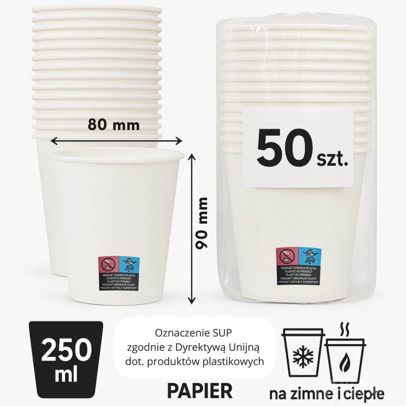 Kubek papierowy biały 250 ml (50 szt.), dopłata SUP