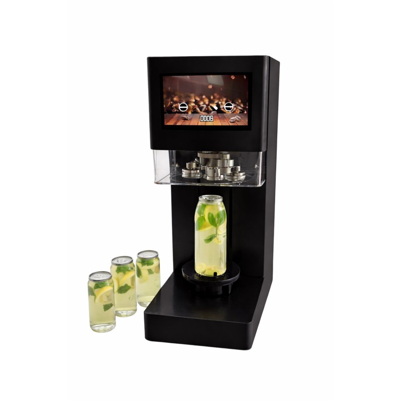Automatyczna maszyna do zamykania puszek PET w kolorze czarnym to nowoczesne i w pełni profesjonalne urządzenie przeznaczone do szybkiego, szczelnego zamykania transparentnych puszek PET stosowanych w gastronomii. Dzięki automatycznemu procesowi zamykania pozwala przygotowywać napoje i desery w efektownym opakowaniu przypominającym klasyczną puszkę, które przyciąga uwagę klientów i podnosi atrakcyjność sprzedaży. Automatyczna maszyna do zamykania puszek umożliwia hermetyczne zamknięcie puszki w kilka sekund, dzięki czemu napój zachowuje świeżość, aromat oraz estetyczny wygląd aż do momentu otwarcia przez klienta. Szczelne zamknięcie sprawia, że napoje idealnie nadają się do sprzedaży na wynos (take-away) oraz do transportu bez ryzyka rozlania.