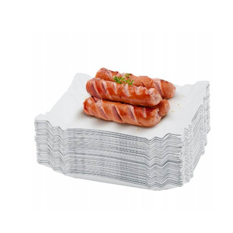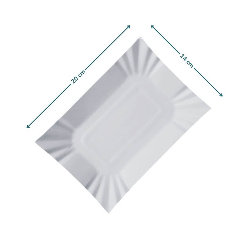 ✔ Wymiary: 140 x 200 mm - dzięki uniwersalnym wymiarom tacki jednorazowe z papieru idealnie nadają się do serwowania ciast, drożdżówek, deserów, frytek, burgerów czy przekąsek;✔ Kolor: biały – estetyczny i elegancki wygląd;