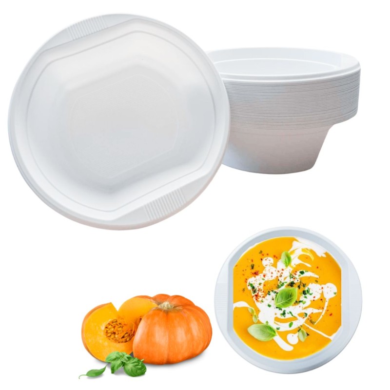 Flaczarka plastikowa o pojemności 500 ml to praktyczne naczynie wielokrotnego użytku, zaprojektowane z myślą o gastronomii, cateringu oraz użytku domowym. Wykonana z wytrzymałego polipropylenu (PP), jest odporna na płyny, oleje i tłuszcze, dzięki czemu idealnie nadaje się do podawania zup, flaków, gulaszu, sałatek, deserów oraz innych dań na ciepło i na zimno.