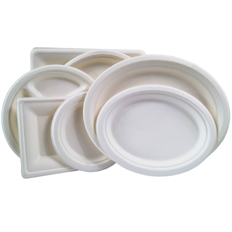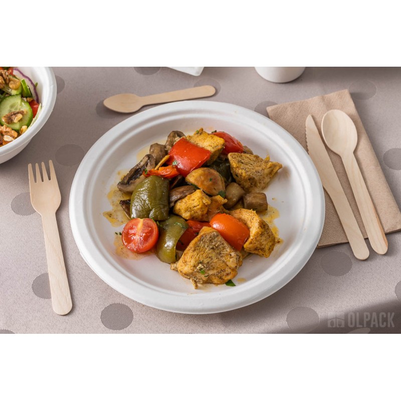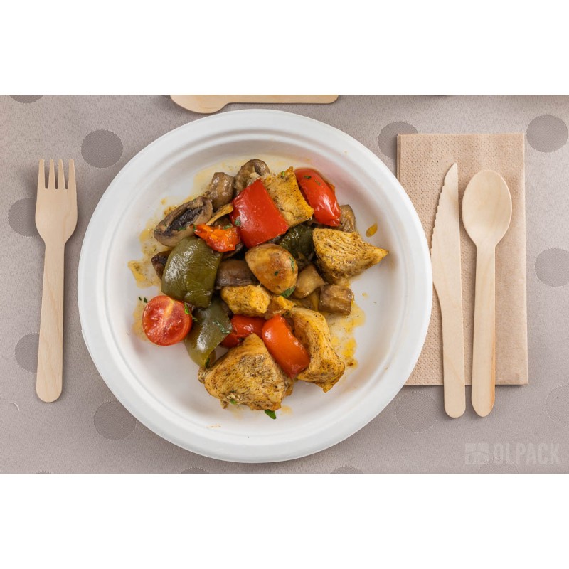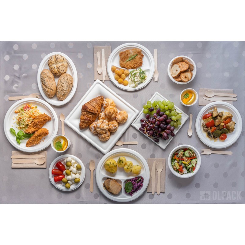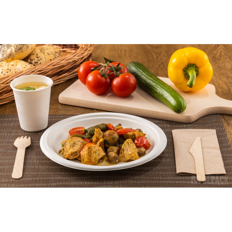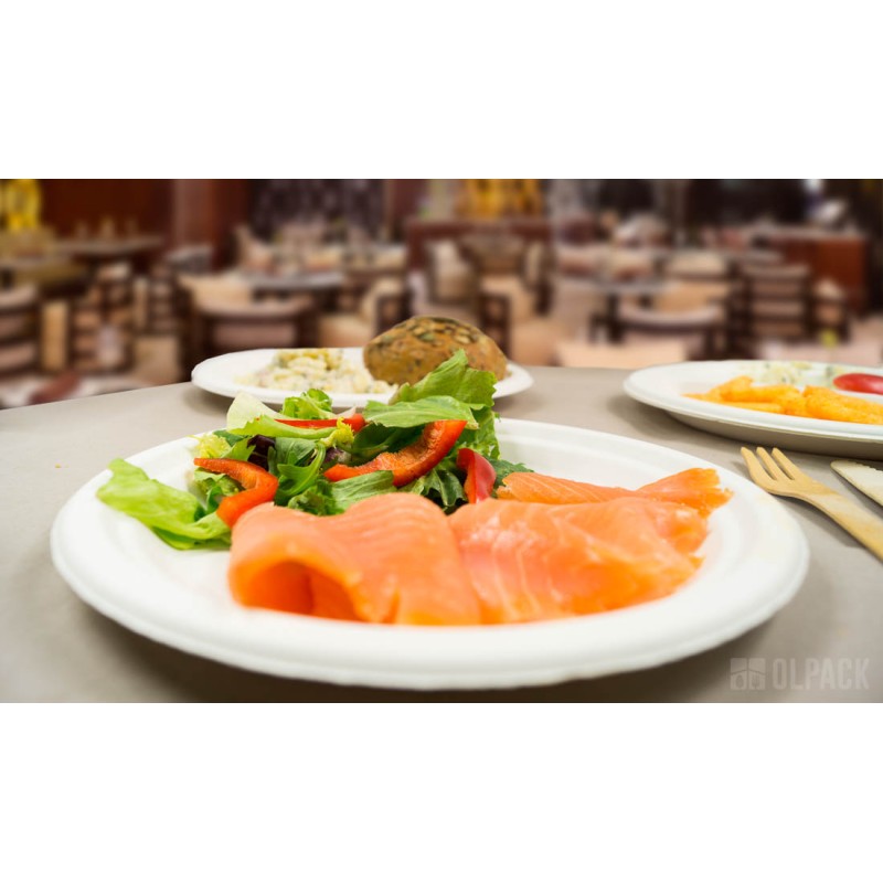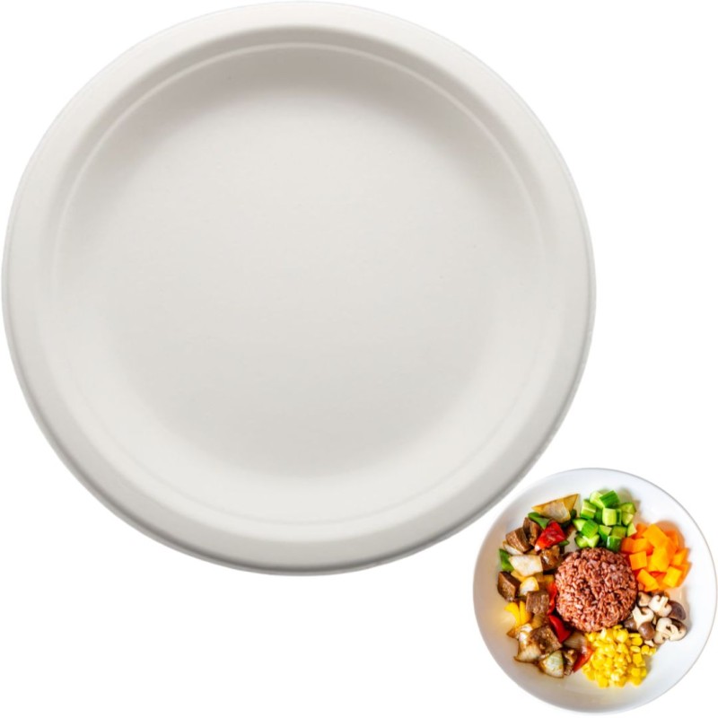 Talerze jednorazowe z trzciny cukrowej, obiadowe o średnicy 230 mm., 50 szt. w opakowaniu.