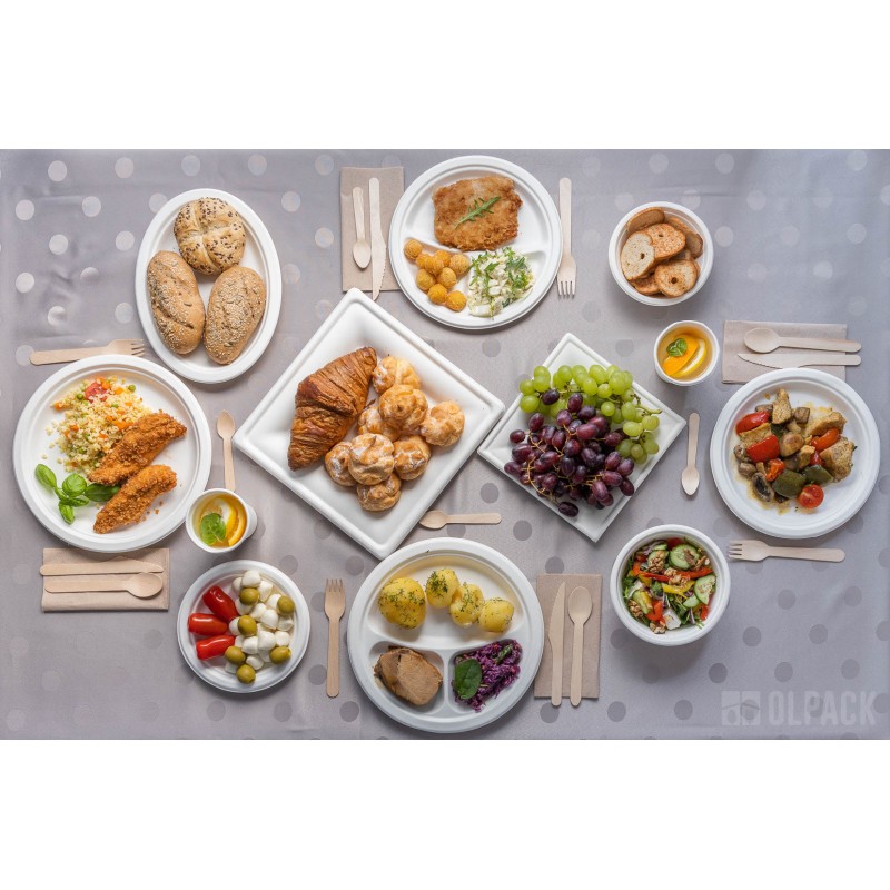 Talerz okrągły 3-dzielny z trzciny cukrowej 230 mm (50 szt.)