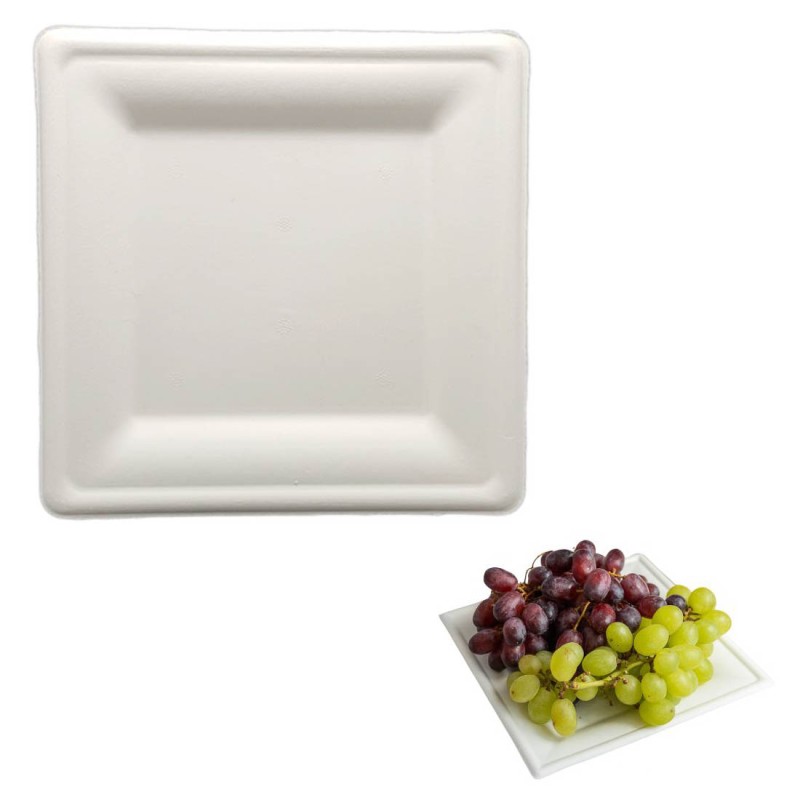 Talerz kwadratowy z trzciny cukrowej 20 cm (50 szt.)