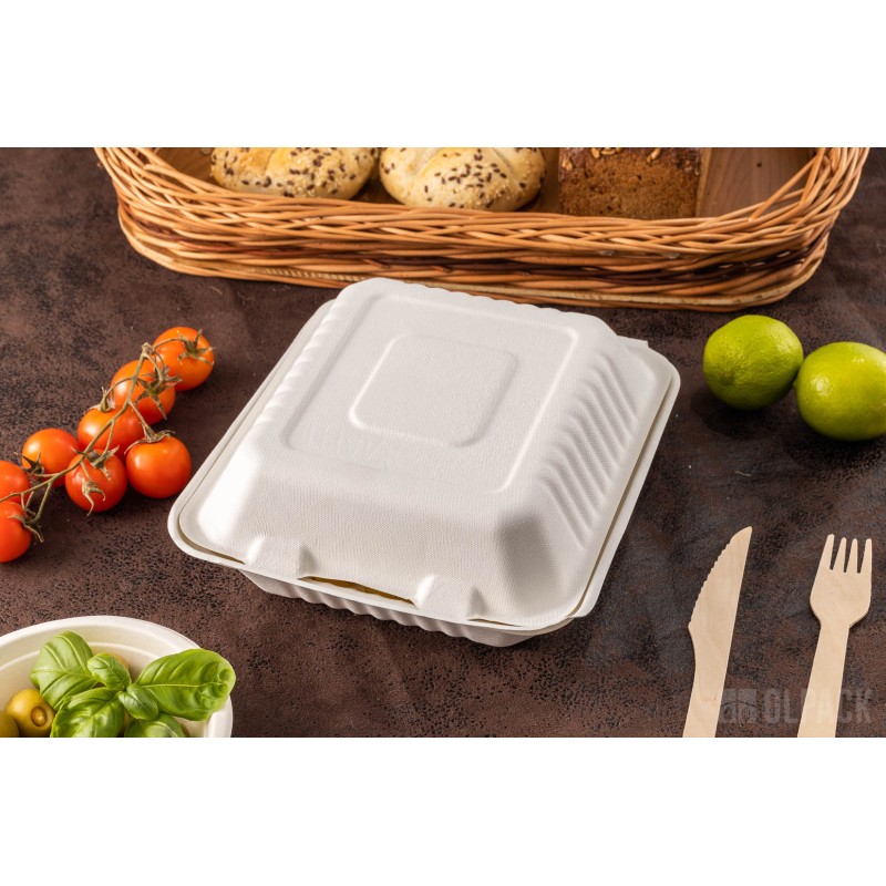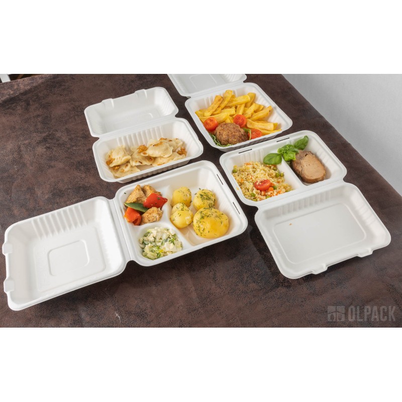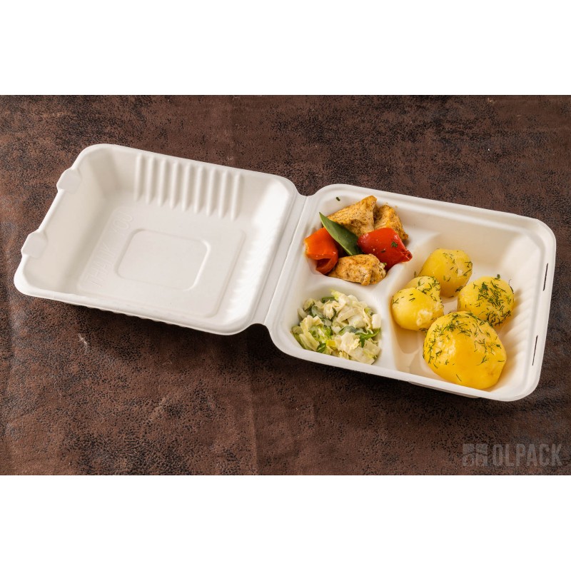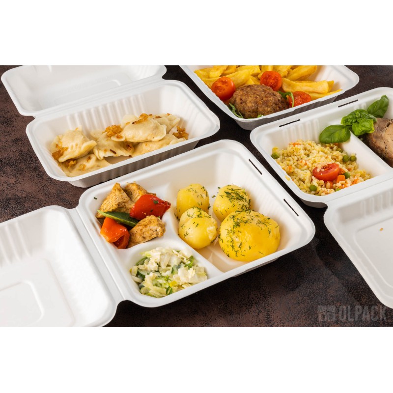 MenuBox 3-dzielny 22 cm x 20 cm z trzciny cukrowej to idealne rozwiązanie dla firm gastronomicznych. Łączy w sobie ekologiczność, wytrzymałość, bezpieczeństwo dla zdrowia, estetykę i łatwość transportu, co czyni go wyjątkowym na rynku opakowań jednorazowych.
