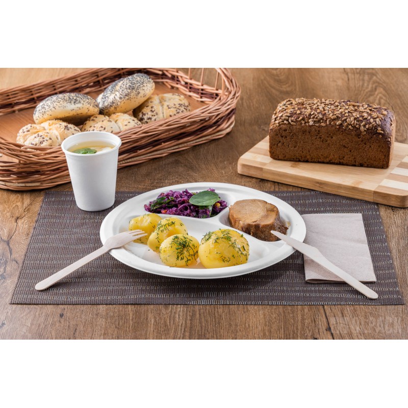 Talerz okrągły 3-dzielny z trzciny cukrowej 230 mm (50 szt.)