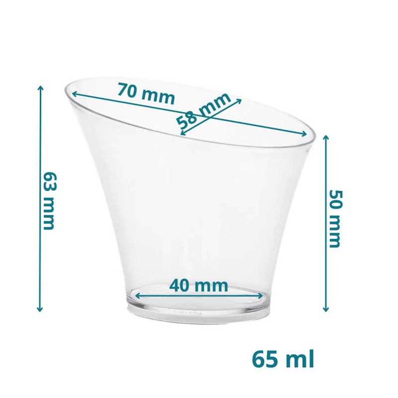 | ✔ Pojemność całkowita: 80 ml ✔ Pojemność użytkowa: 65 ml ✔ Materiał: polistyren (PS) ✔ Kształt: owalny ✔ Kolor: transparentny/przeźroczysty ✔ Certyfikaty: dopuszczone do kontaktu z żywnością, badania wykonane w polskich akredytowanych laboratoriach oraz potwierdzona zgodność wielokrotności z normą PN-EN 12875-1 ✔ Recykling: tworzywo PS nadające się do recyklingu - po wykorzystaniu może być selektywnie zbierane i przetwarzane ✔ Właściwości: grube, sztywne tworzywo, odporne na standardowe temperatury serwowania dań gorących i zimnych ✔ Ilość w opakowaniu: 16 szt. |