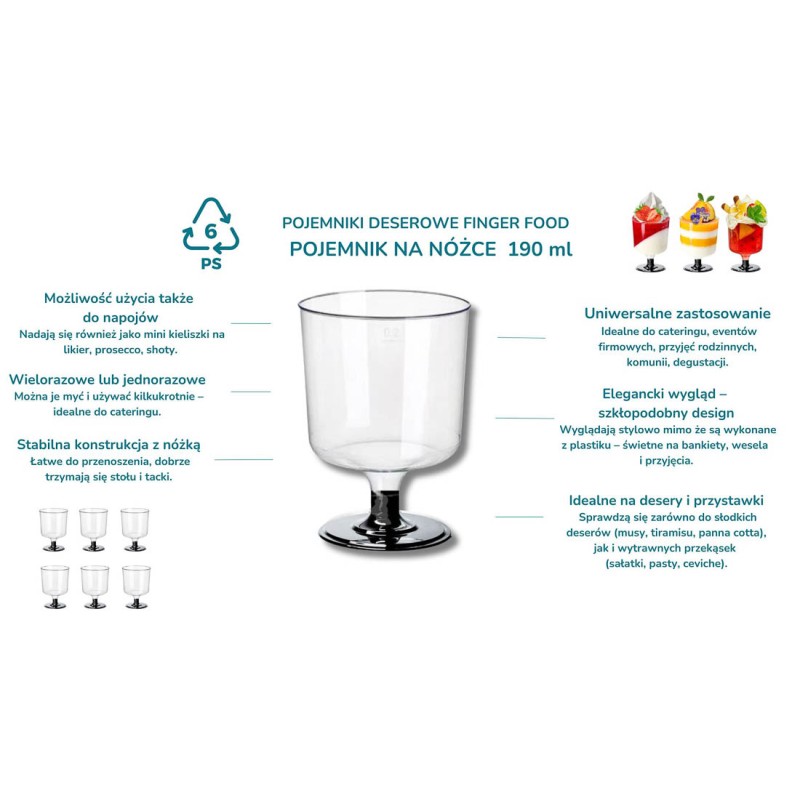 Pojemnik deserowy finger food na czarnej nóżce 190 ml (6 szt.)