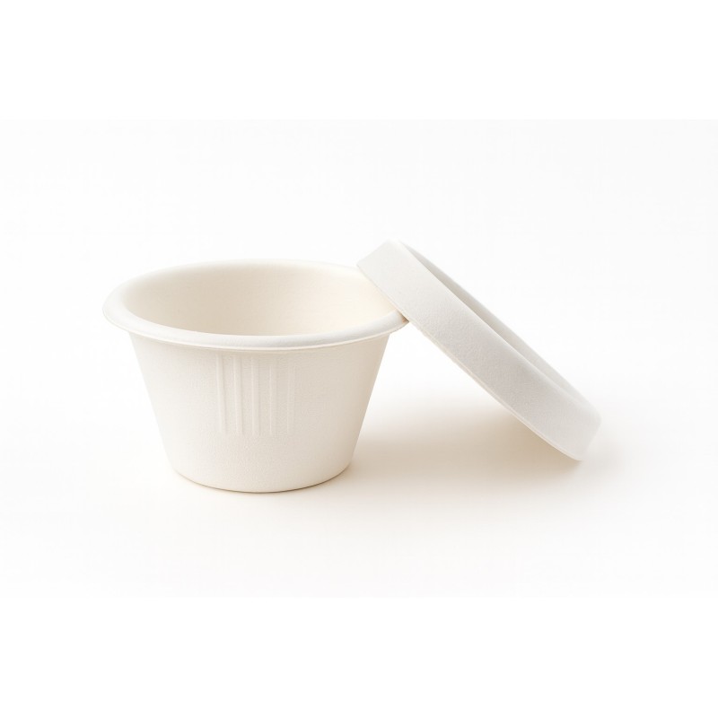 Pojemnik ekologiczny na sos z trzciny cukrowej 120 ml z pokrywką (50 szt.)