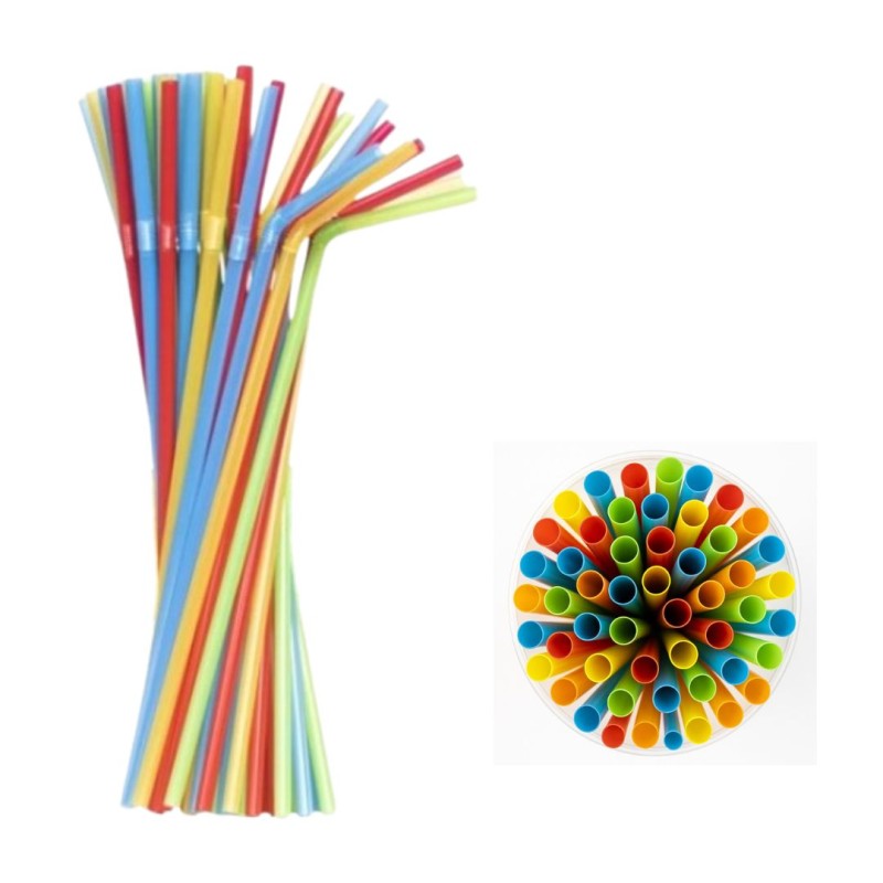 Słomki plastikowe łamane MIX kolorów 5 mm / 21 mm (500 szt.)
