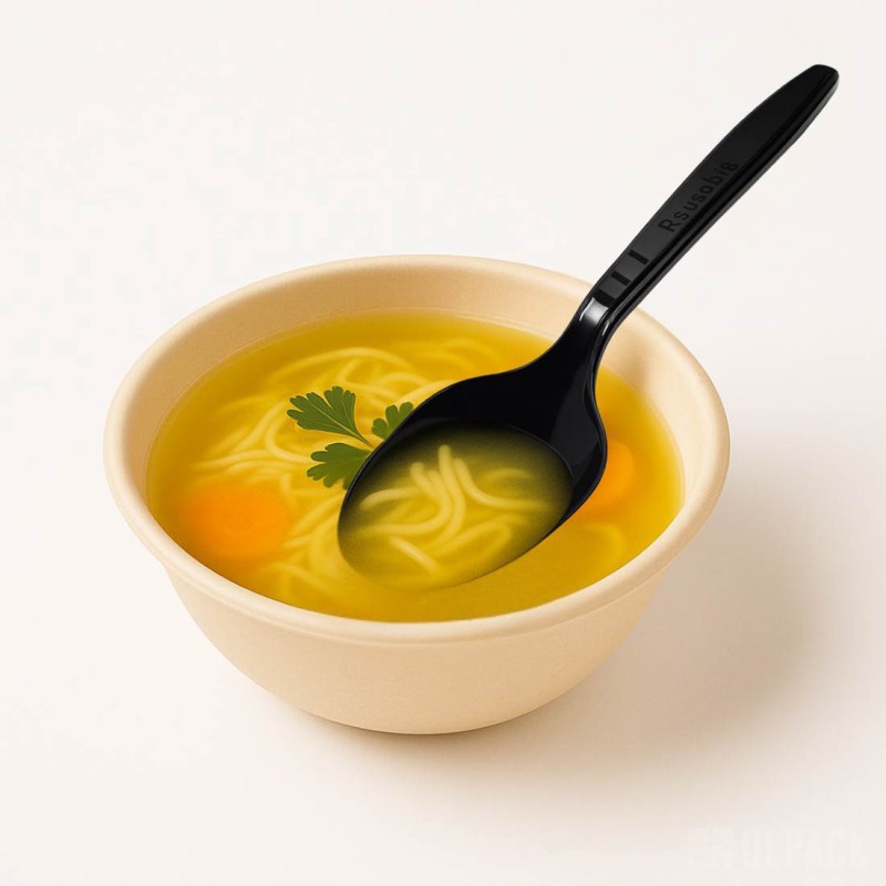 Czarna łyżka świetnie sprawdzi się jako eleganiczne uzupełnienie styropianowych misek na zupy oraz opakowań gastronomicznych pod zgrzew. Jej klasyczny kolor i solidna konstrukcja podkreślają estetykę serwowanego dania, a jednocześnie zapewniają wygodę podczas spożywania gorących potraw w formacie na wynos lub cateringu.