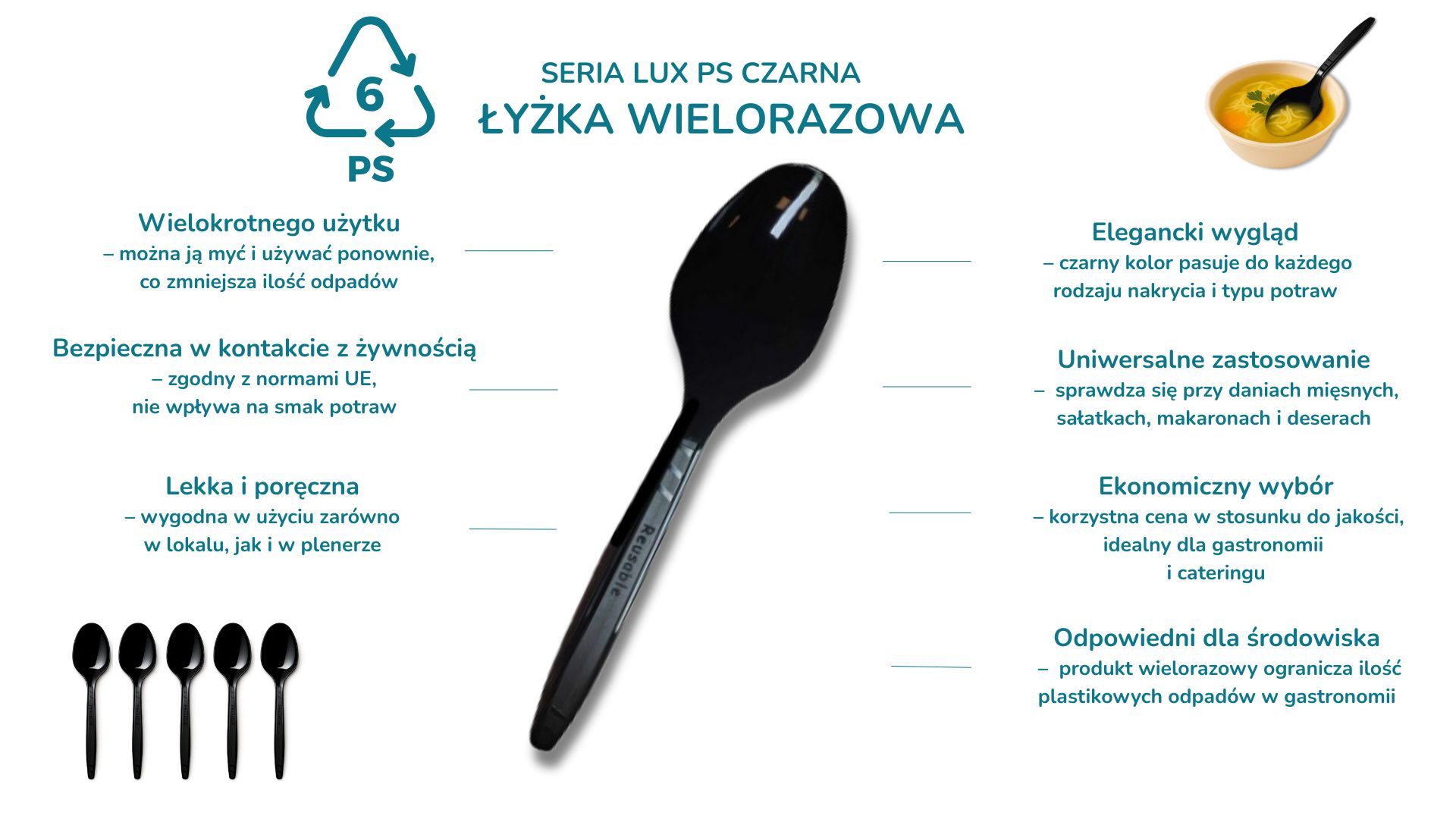 Łyżka wielokrotnego użytku czarna LUX 178 mm (100 szt.)