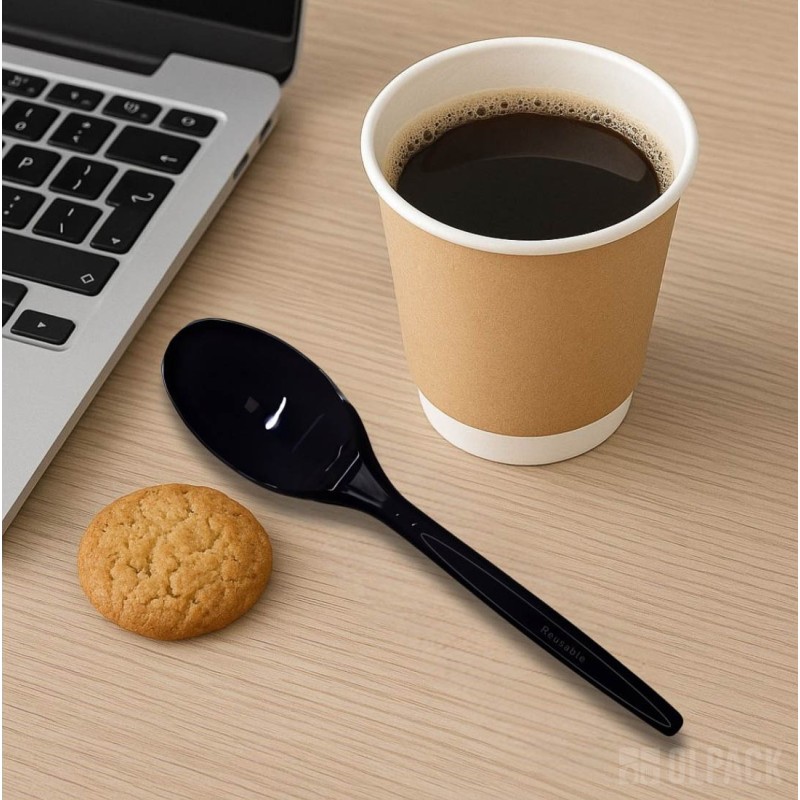 Łyżeczka wielokrotnego użytku czarna LUX 145 mm (100 szt.)